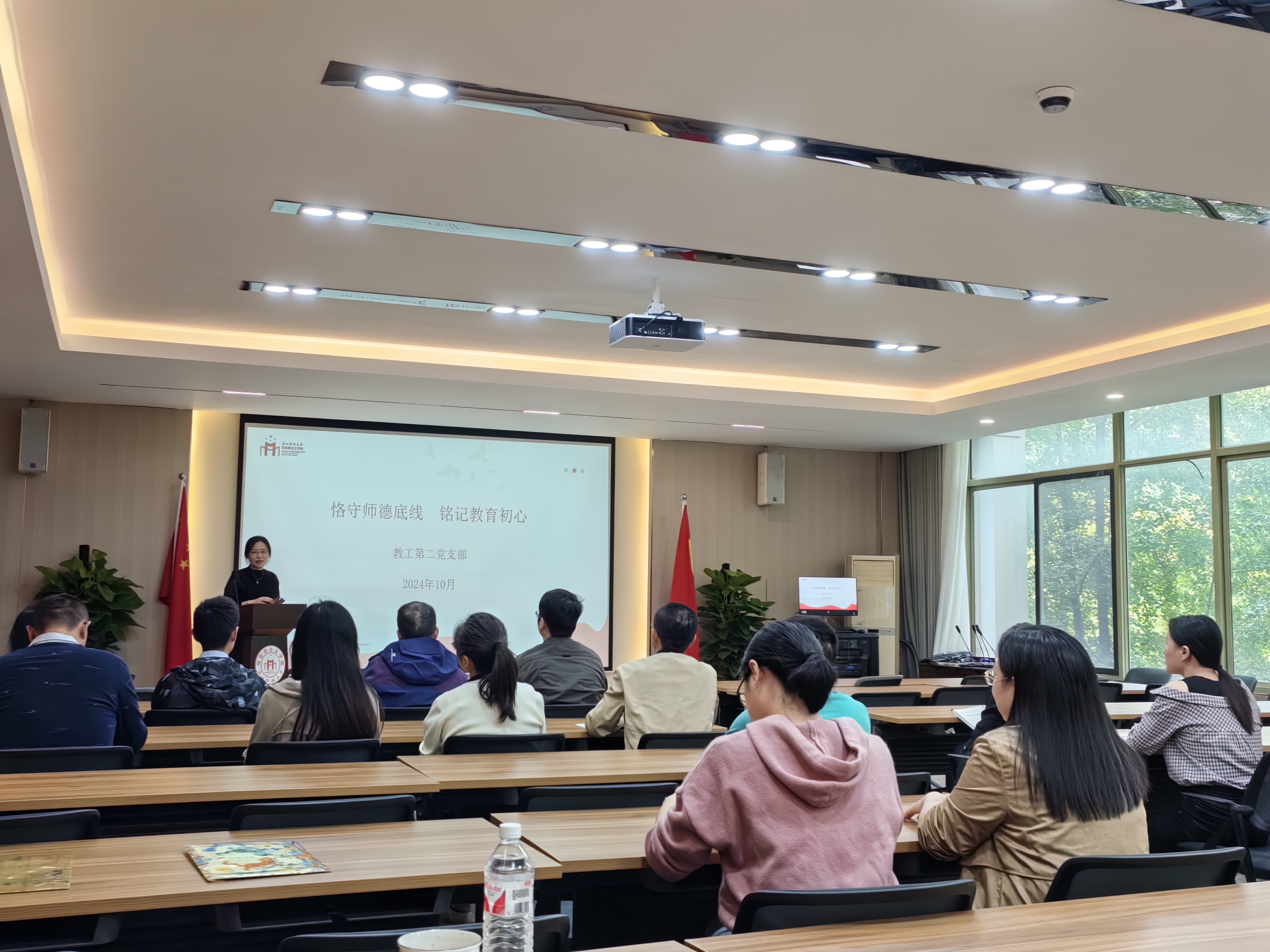 本次党课以“恪守师德底线,铭记教育初心”为主题,首先支部书记带领全体党员学习了习近平总书记在全国教育大会上的讲话《紧紧围绕立德树人根本任务朝着建成教育强国战略目标扎实迈进》,并围绕违反教师职业行为十项准则典型案例开展警示教育,做到警钟长鸣、举一反三。