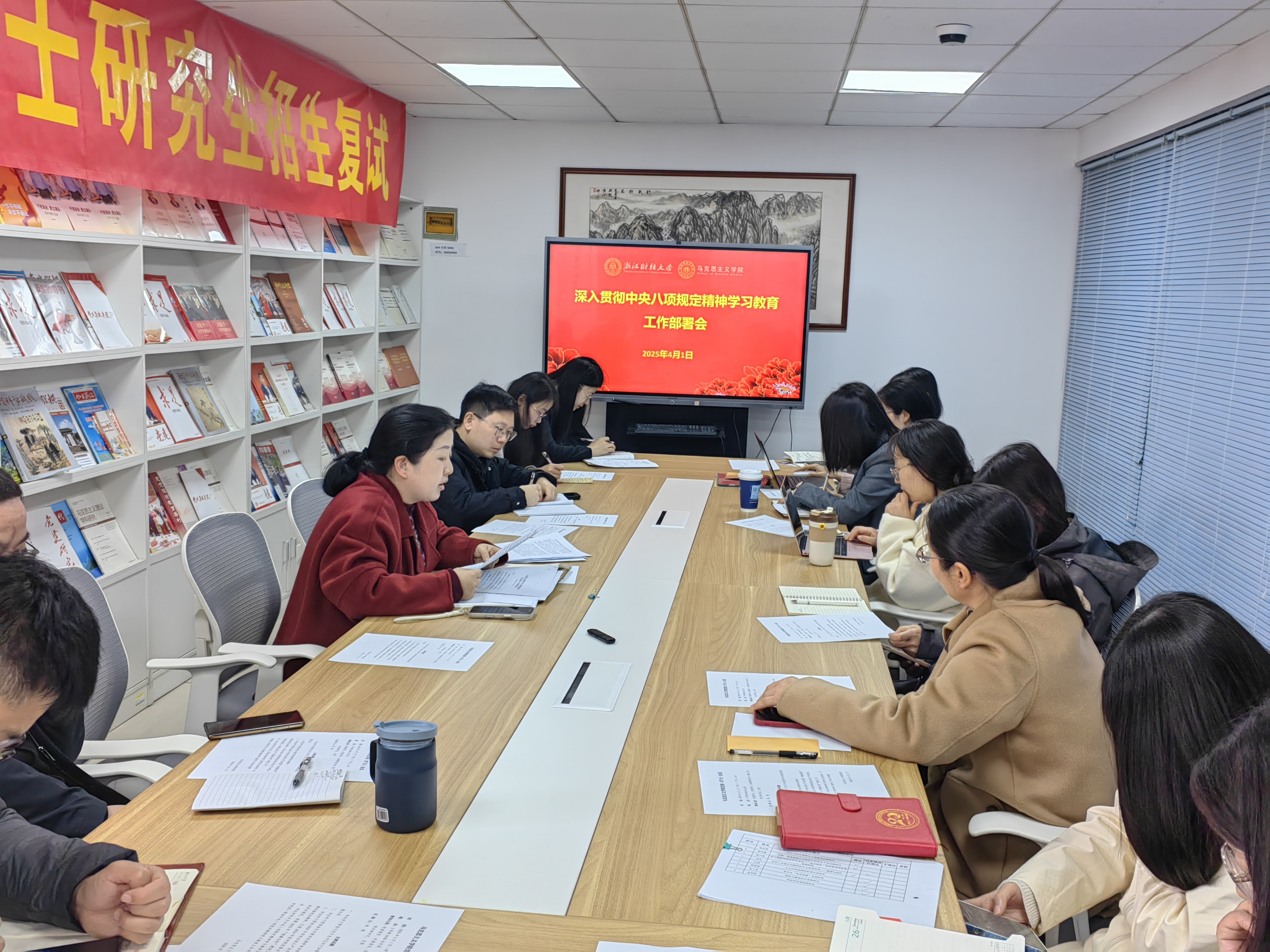 召开深入贯彻中央八项规定精神学习教育工作部署会。会议由学院党委书记高燕主持,学院党委委员、纪委委员、各党支部书记、支委及教研部主任参加会议。