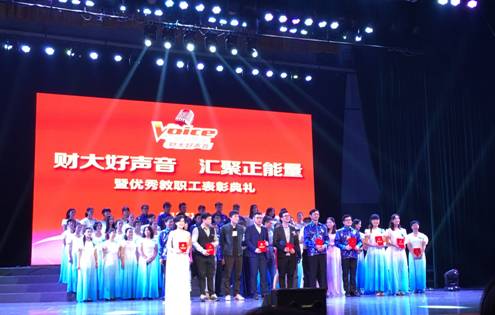 10月27日下午,让我们期待已久的第三届“财大好声音•汇聚正能量”暨教职工先进集体和优秀个人表彰典礼在文化中心如期举行。各位教职工大展身手,能歌善舞,为我们带来一场场视觉盛宴,一曲曲动人天籁。在文化中心掀起一阵又一阵由尖叫声、欢呼声以及掌声汇成的音浪。庆典中旬,在一曲《长大后我就成了你》之后,进入了“我心目中的好老师”、“浙江省师德标兵”颁奖环节。我部青年教师李晓娟老师获得浙江省师德标兵荣誉并登台领奖。
