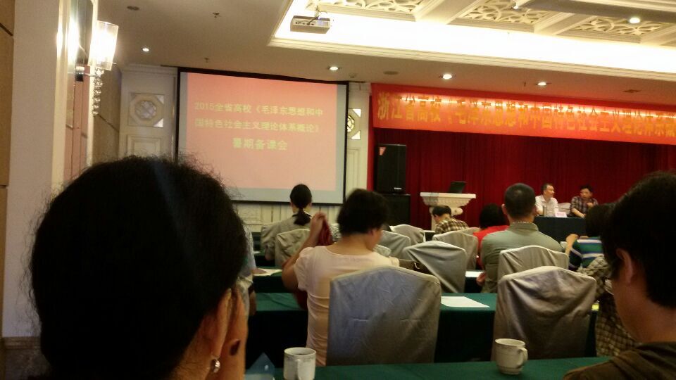 2015 年7月10日 ,全省高校“毛泽东思想和中国特色社会主义理论体系概论” 暑期备课会在杭州举行,我部贾亚君老师参加了该备课会。
