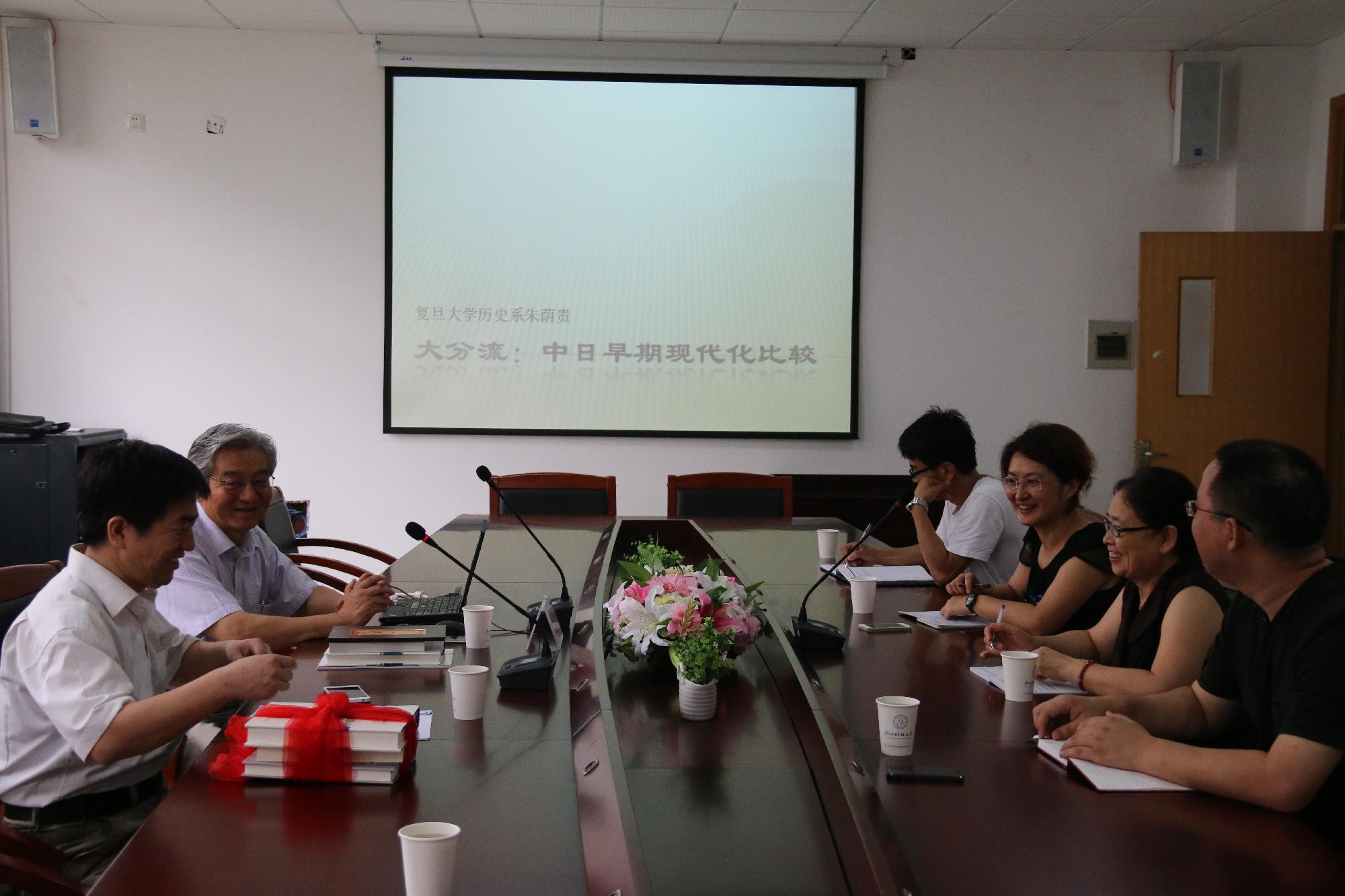 7月1日上午,复旦大学博士生导师朱荫贵教授应邀为我部政府管制思想史课题组的全体老师作了题为“大分流:中日早期现代化比较”的学术报告。报告开始前,王俊豪校长代表学校向朱荫贵教授颁发了91视频