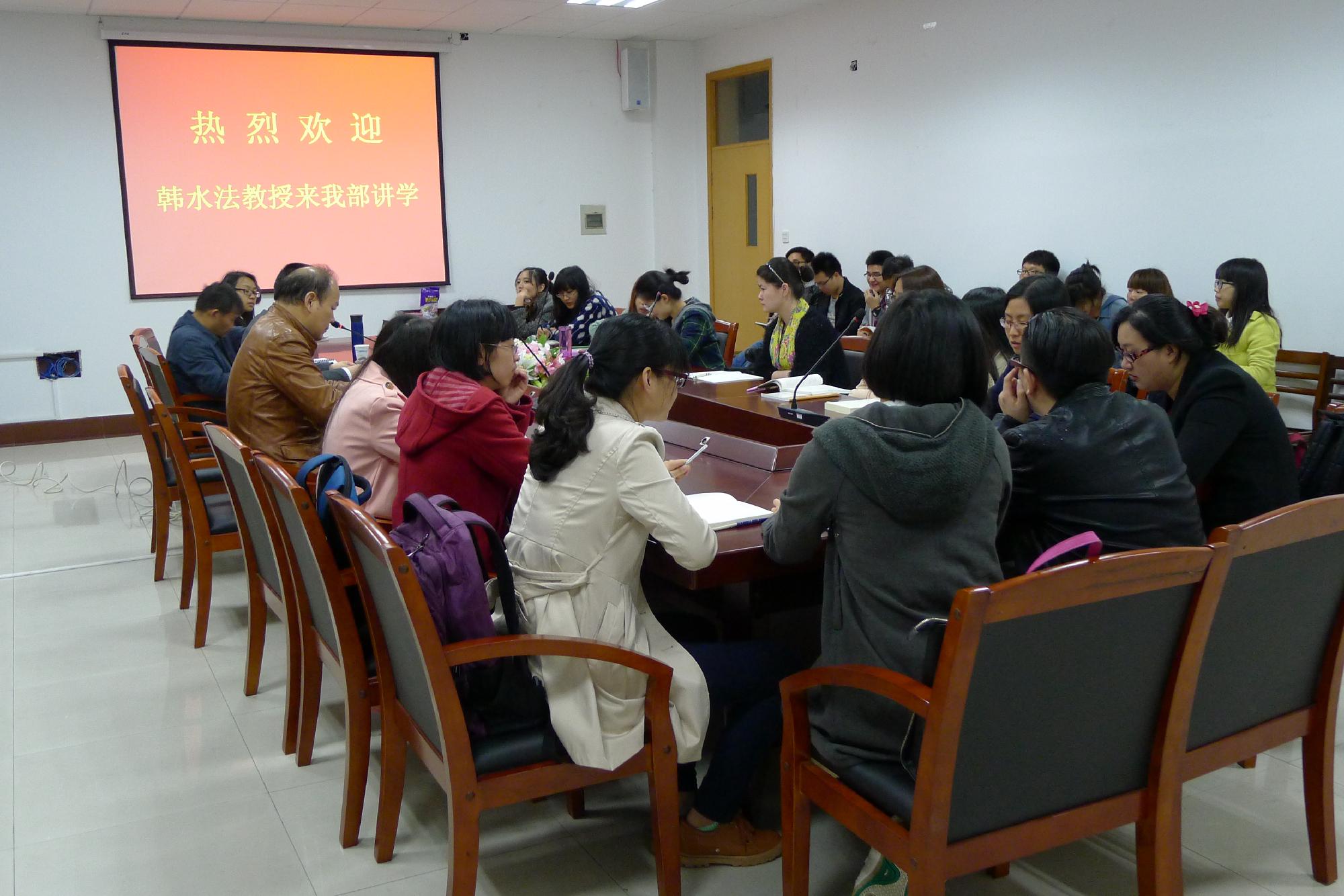 2014年4月21日晚,应我部邀请,北京大学哲学系教授、博士生导师韩水法教授在3号楼211为我部师生作了主题为《启蒙的第三要义》的学术讲座。讲座由何历宇教授主持。