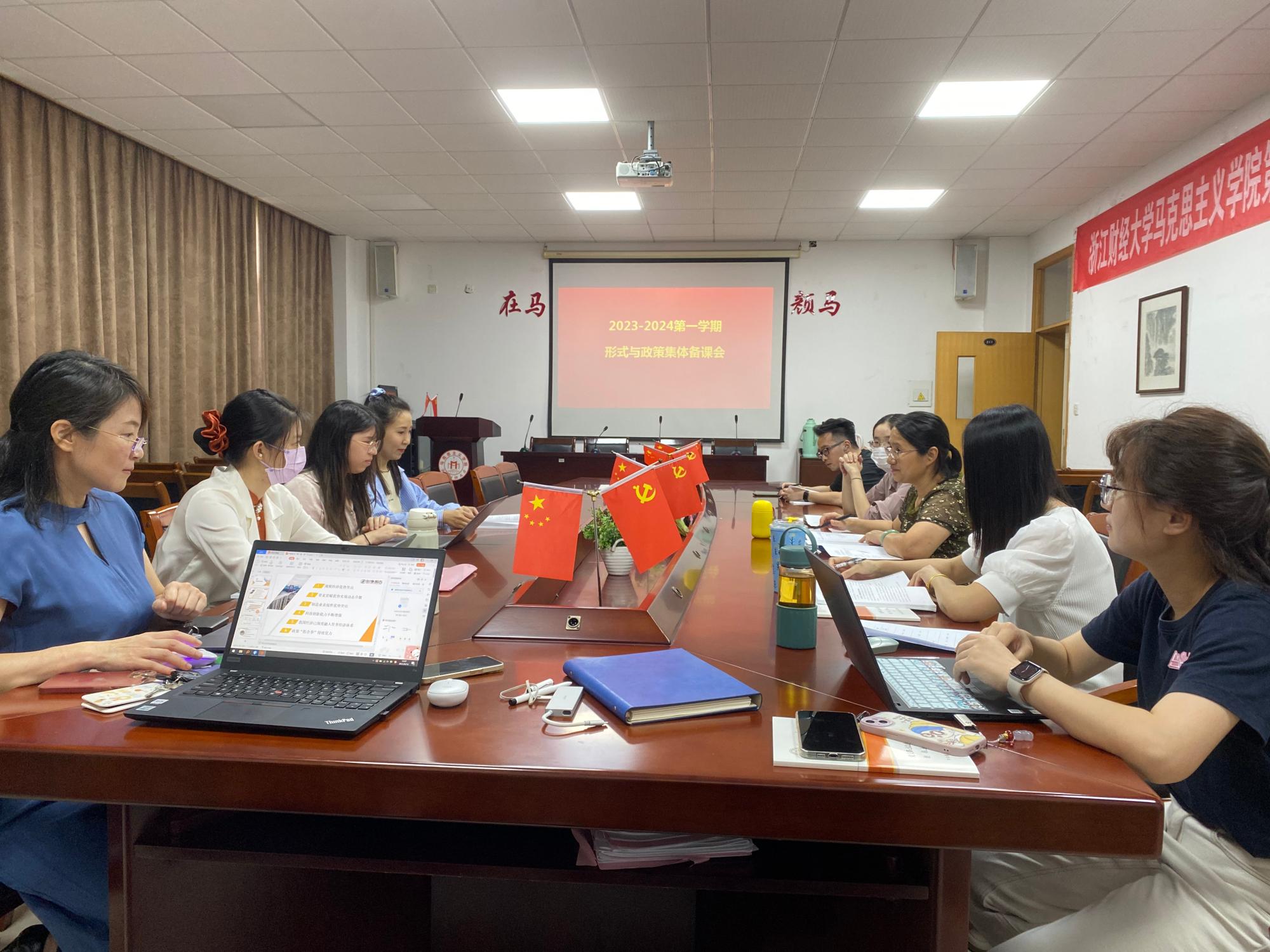 为深入学习宣传贯彻党的二十大精神,进一步推动提升思想政治理论课教育教学质量,9月1 4日中午,“形势与政策"课教学团队组织召开了集体备课会。