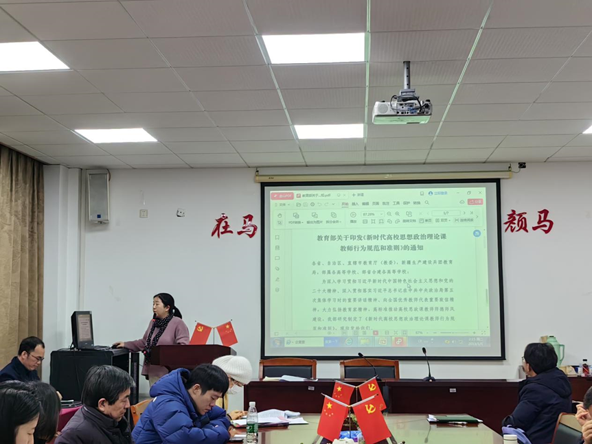 在学院楼211会议室组织全体思政课教师政治理论学习会,专题学习教育部印发的《新时代高校思想政治理论课教师行为规范和准则》(以下简称《行为规范和准则》)。会议由91视频
