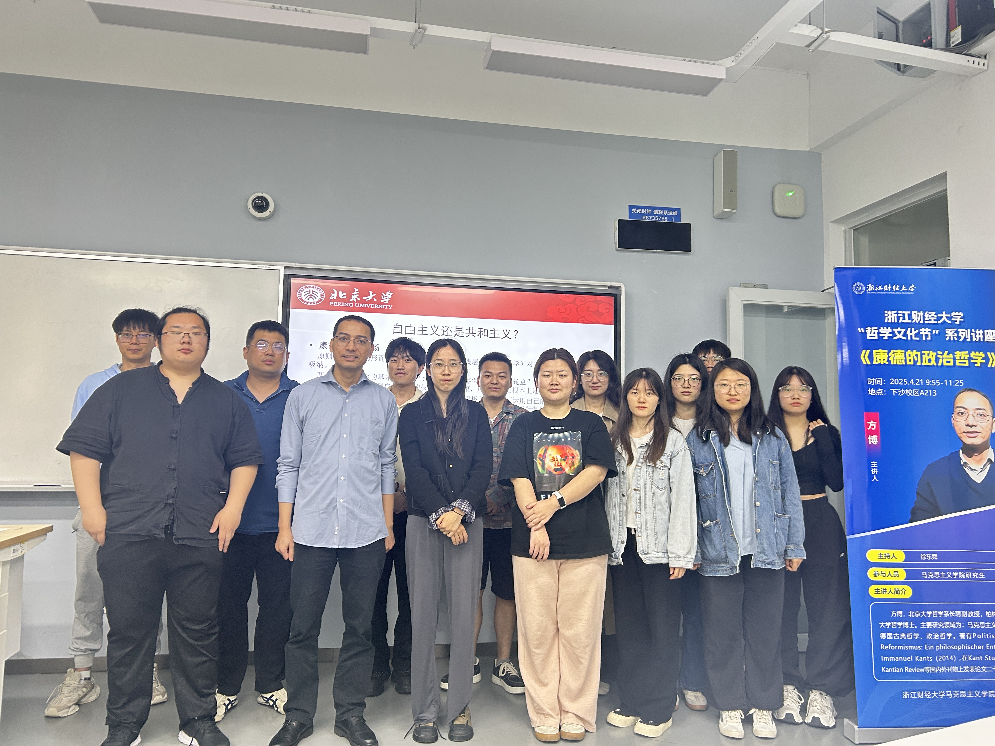 伦理研究所邀请,在下沙校区A213为学院师生带来题为“康德的政治哲学”的学术盛宴。作为哲学文化节的重磅学术活动,本次讲座吸引了伦理学30余名师生,共同探寻启蒙思想家的政治智慧。