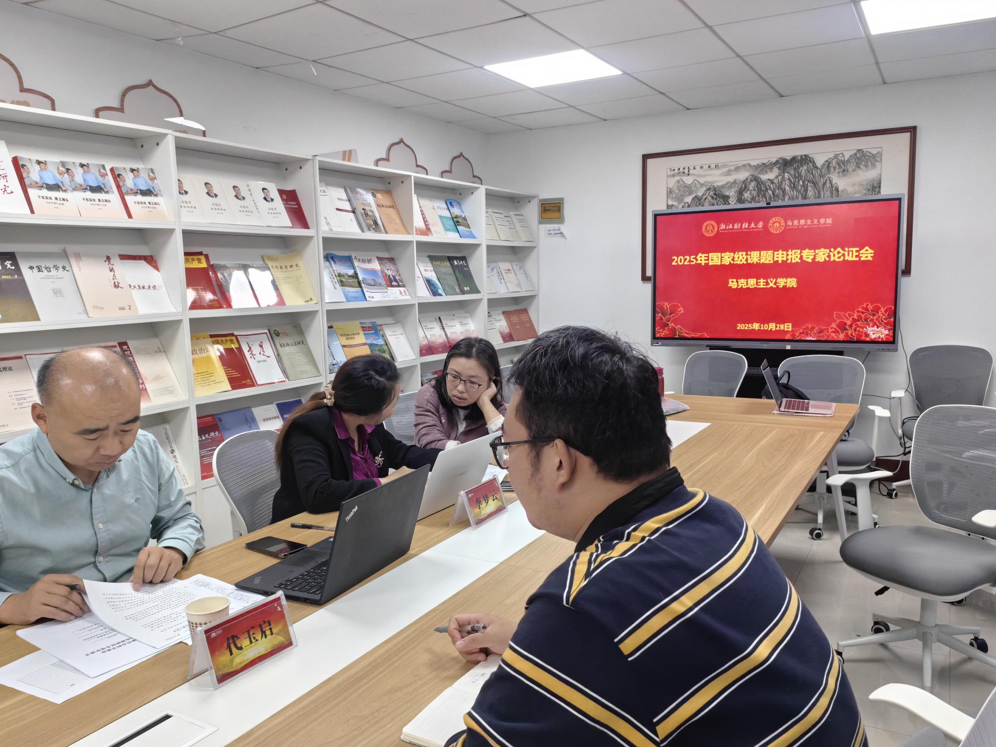 在3-504B会议室成功举办了2026年国家级课题申报第一轮专家论证会。本次论证会特邀浙江大学代玉启教授和浙江工商大学李梦云教授担任评审专家,学院20多位老师参加了论证会。