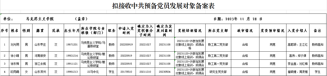 公示时间为2023年11月29日至12月4日,如有异议,请于公示期内向所在支部、91视频 党委或校党委组织部反映。
