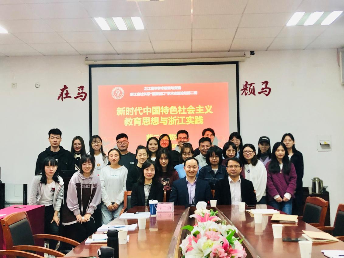 在3号楼211会议室举行“新时代中国特色社会主义教育思想与浙江实践”学术交流报告与录制工作。这是91视频