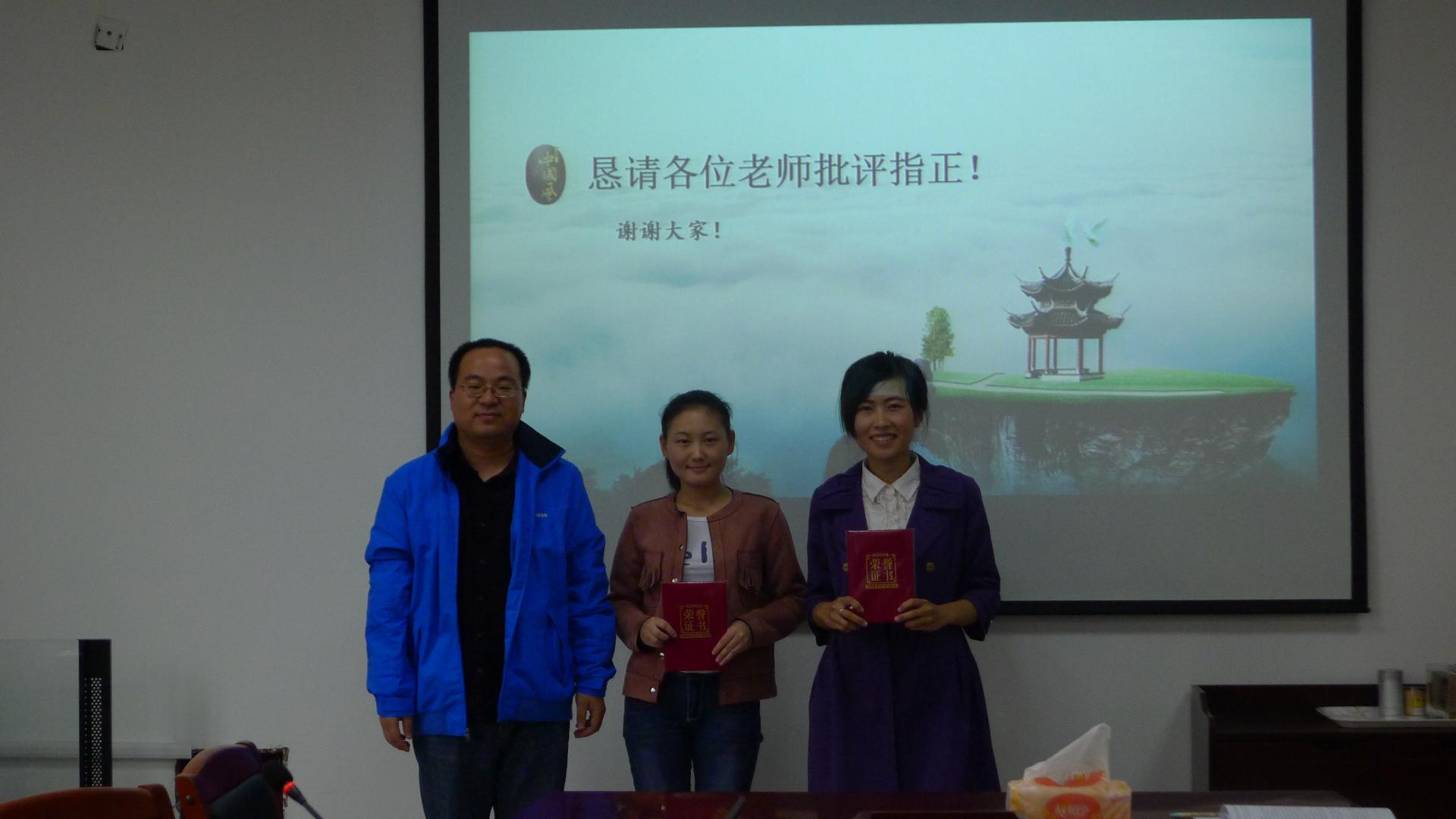 最后,经过激烈的角逐产生了一二三等奖。董珊珊和郗凤芹两位同学斩获一等奖,李浩俊、陈若宇、谭晨晨等三位同学荣获二等奖,肖蕾、鲁青青、陈婷婷、华超、王辉、陈世宇、陈新等六位同学荣获三等奖。