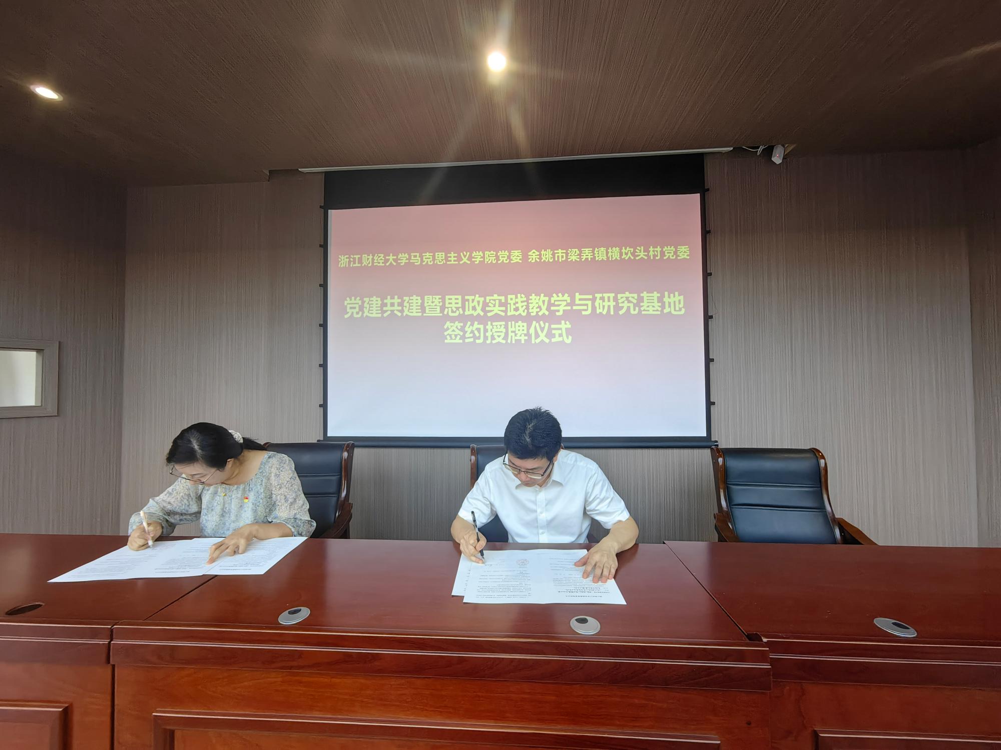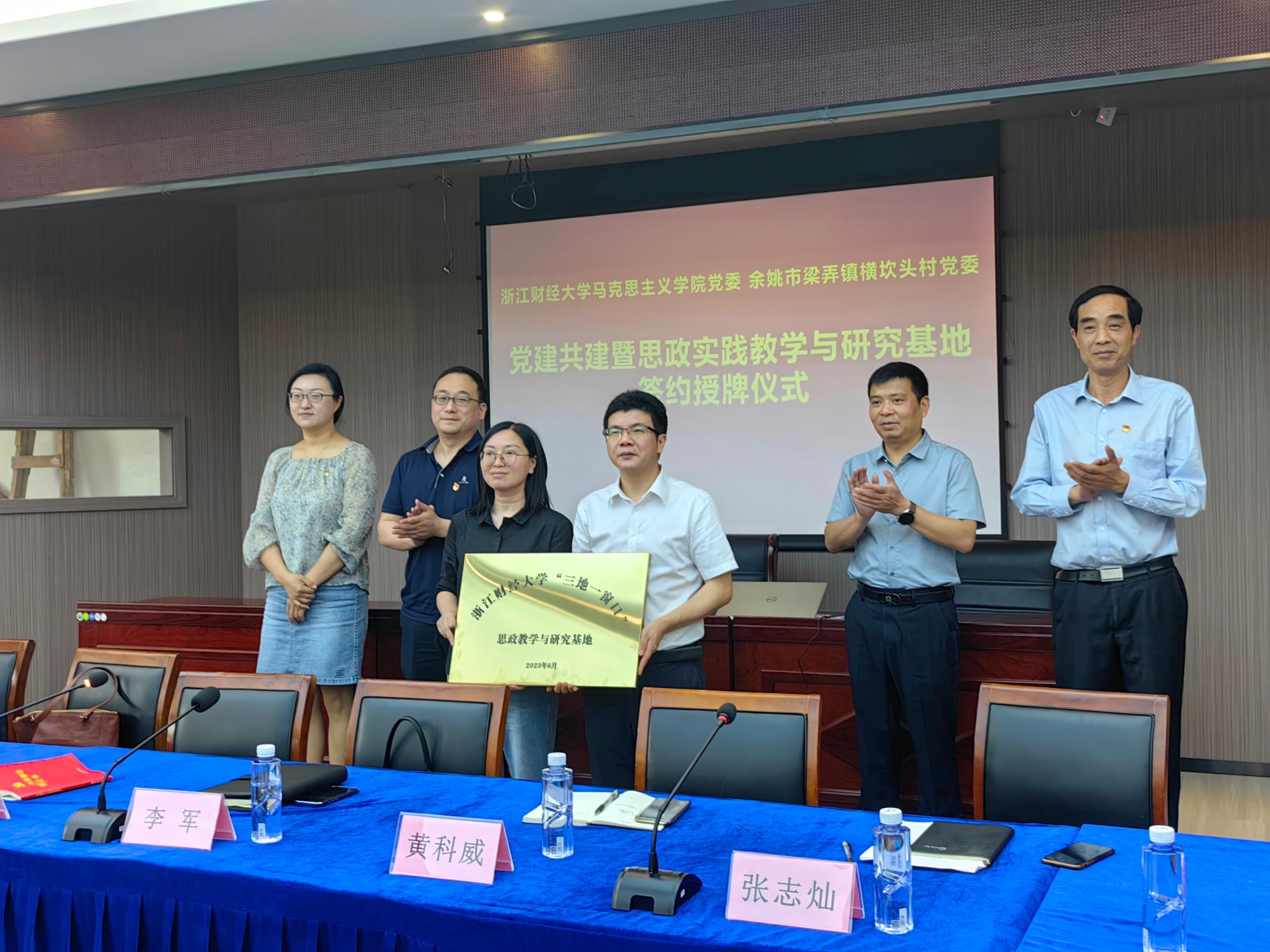 党委组织师生前往横坎头村、浙东(四明山)抗日根据地旧址开展学习贯彻习近平新时代中国特色社会主义思想主题教育,并与余姚梁弄横坎头村举行党建共建暨思政实践教学与研究基地签约授牌仪式。梁弄镇党委书记李军,横坎头村党委书记、村委会主任黄科威,91视频